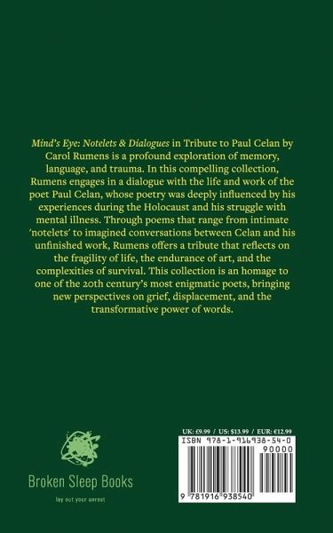Mind's Eye by Carol Rumens is a profound exploration of memory, language, and trauma. In this compelling collection, Rumens engages in a dialogue with the life and work of the poet Paul Celan.