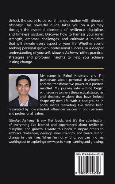 Unlock the secret to personal transformation with 'Mindset Alchemy.' This powerful guide takes you on a journey through the essential elements of resilience, discipline, and timeless wisdom. Discover how to harness your inner strength, embrace challenges, and cultivate a mindset that will elevate every aspect of your life. Whether you're seeking personal growth, professional success, or a deeper understanding of yourself, 'Mindset Alchemy' offers practical strategies and profound insights to help you achieve lasting change.
