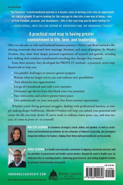 "The Seamons' transformational journey is a master class in turning crisis into an opportunity for radical growth. If you're looking for the courage to step into a new way of being-one of true freedom, purpose, and abundance-this is the road map you've been waiting for." -DEREK RYDALL, best-selling author of Emergence and The Abundance Project A practical road map to having greater contentment in life, love, and leadership After two decades as wife-and-husband business partners, Malitta and Brad reached a life-altering crossroads that tested their marriage, business, and sense of purpose. In Mindset Freedom, they share their deeply personal experiences of turmoil and growth, revealing how shifting their mindsets transformed everything they thought they wanted. From their journey, they developed the PROVE IT method-a practical, seven-step framework to help you: ¿ Use painful challenges to uncover greater purpose ¿ Release what no longer serves you and embrace new possibilities ¿ Turn obstacles into opportunities ¿ Let go of victimhood and craft a new narrative ¿ Overcome ego-driven fears that block your true potential ¿ Face insecurities and achieve greater inner peace ¿ Live authentically on your own path, free from external expectations Whether you're facing personal struggles, dealing with professional barriers, or simply seeking deeper fulfillment, Mindset Freedom will help you unlock your potential and create the life you truly desire. If you're ready to embrace inner peace, joy, and true success, it's time to prove it-to yourself.