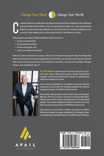 Countless Americans make their way home from work each day, stopping at their mailboxes to grab another fistful of bills, so they can go inside and figure out a way to keep things afloat for another thirty days. Whether you're stuck in that rut or doing everything you can to avoid it, best-selling author and success coach Dr. Dave Martin can help. Embracing the principles in Mindset Matters will cause you to:Live an exceptional life, Do extraordinary things, Achieve your goals, and Leave your mark on the world! Follow Dr. Dave's formula for success, and you'll eventually find yourself doing the things that others only dream about doing and going places where others can only dream about going. A person with a vision for life becomes part of the solution for mankind-not part of the problem. Mindset matters, and everybody knows it!