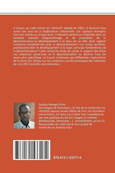 A travers un code minier dit "attractif" adopté en 2003, le Burkina Faso ouvre son sous-sol à l'exploitation industrielle. Les capitaux étrangers font leur entrée au niveau local. L'industrie extractive s'implante dans un contexte national d'apprentissage et de promotion de la décentralisation.Le développement à la base est un défi. Quel rapport l'industrie entretient-elle avec la décentralisation? Ces mines aurifères, promeuvent-elles le développement à la base, principe fondamental de la décentralisation? Cette recherche tente de cerner le rapport réel entre ces industries extractives et la décentralisation au Burkina Faso. De façon plus spécifique, ce travail s'intéresse aux différentes implications de la mine d'or d'Inata sur les conditions sociéconomiques des habitants de cinq (05) localités environnantes...