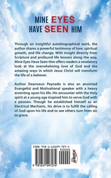 Through an insightful autobiographical work, the author shares a powerful testimony of love, spiritual growth, and life change. With insight directly from Scripture and profound life lessons along the way, Mine Eyes Have Seen Him offers readers a revelatory look at the overwhelming love of God and the amazing ways in which Jesus Christ will transform the life of a believer. Author Deanvaun Peynado is also an anointed Evangelist and Motivational speaker with a heavy anointing upon his life. His encounter with the Holy spirit at a young age inspired him to serve God with a passion. Though he established himself as an Electrical Mechanic, his drive is to fulfill the calling of God upon his life and to see others turn from sin to grace.