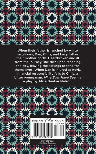 Mine Eyes Have Seen (1918) is a one-act play by Alice Dunbar Nelson. Published in The Crisis, the influential journal of the NAACP, Mine Eyes Have Seen is a brutal portrait of race and identity in twentieth century America. Exploring themes of violence, faith, patriotism, and economic struggle, Dunbar Nelson crafts a poignant and unforgettable work of fiction. When their father, a successful black man, is lynched by vengeful white neighbors, Dan, Chris, and Lucy flee north with their mother. They reach the city safely, but their mother soon dies from heartbreak and exhaustion, leaving her children to fend for themselves. Dan, the eldest, manages to support his siblings until an accident at the factory leaves him crippled. This forces Chris, a bitter young man, to take financial responsibility for the family. When the United States enters the First World War, authorizing the Selective Service Act of 1917, Chris is drafted into the military. Despite his hesitation and distrust of a government that allowed his father to be murdered with impunity, he soon comes under the influence of patriotic white neighbors who encourage him to sacrifice his life for the nation. This edition of Alice Dunbar Nelson's Mine Eyes Have Seen is a classic of African American literature reimagined for modern readers. Since our inception in 2020, Mint Editions has kept sustainability and innovation at the forefront of our mission. Each and every Mint Edition title gets a fresh, professionally typeset manuscript and a dazzling new cover, all while maintaining the integrity of the original book. With thousands of titles in our collection, we aim to spotlight diverse public domain works to help them find modern audiences. Mint Editions celebrates a breadth of literary works, curated from both canonical and overlooked classics from writers around the globe.
