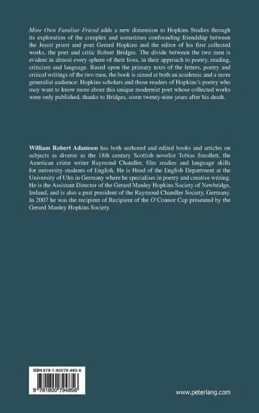 Mine Own Familiar Friend adds a new dimension to Hopkins Studies through its exploration of the complex and sometimes confounding friendship between the Jesuit priest and poet Gerard Hopkins and the editor of his first collected works, the poet and critic Robert Bridges. The divide between the two men is evident in almost every sphere of their lives, in their approach to poetry, reading, criticism and language. Based upon the primary texts of the letters, poetry and critical writings of the two men, the book is aimed at both an academic and a more generalist audience: Hopkins scholars and those readers of Hopkins's poetry who may want to know more about this unique modernist poet whose collected works were only published, thanks to Bridges, some twenty-nine years after his death.