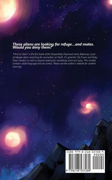 These aliens are looking for refuge...and mates. Would you deny them? Lance Living in Alaska has brought me closer to my roots, but also keeps me rooted in the same small town as my toxic ex-girlfriend. A trip to Cancun, Mexico is starting to look like the perfect breath of fresh air. But when I meet a girl on the beach who says we're mates, things start to get a little weird. And that's not all; she says she's from outer space and was sent to Earth along with 29 other aliens to await her planet's rebirth. Talk about an unforgettable vacation. Georgia Being an omega in a lycan pack isn't as glamorous as it looks. Especially when you're the runt of a pack living on a planet experiencing the Great Mating Ceasement. It makes me unnecessary, insignificant, a throwaway. But on Earth, I can be more than that. So when the opportunity arises, I say to hell with my pack and make a break for it. I thought hours of pawing through forest floors were in my future; who knew I would actually find a mate, would actually be worthy of one. Now all I have to do is keep him. "Mine to Claim" is the first book of the Desperately Depraved series following a pod of refugee aliens searching for connection on Earth. It's great for Clio Evans and Ruby Dixon readers as well as anyone looking for something short and spicy. This novella contains adult language and sex scenes. Please see the author's website for content warnings.