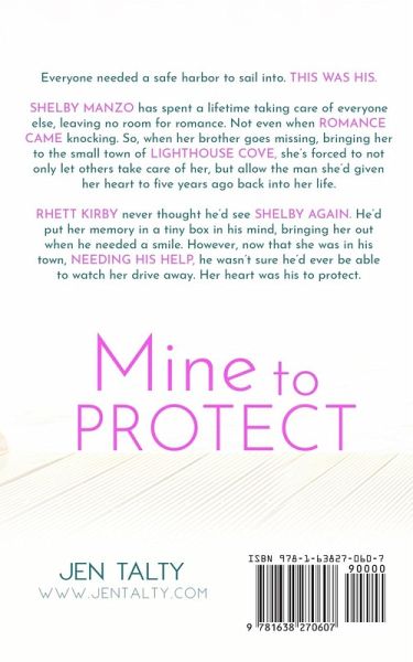 From USA Today Bestselling Author, Jen Talty comes a small town, second chance romance set in her Safe Harbor series. Everyone needed a safe harbor to sail into. This was his. Shelby Manzo has spent a lifetime taking care of everyone else, leaving no room for romance. Not even when romance came knocking. So, when her brother goes missing, bringing her to the small town of Lighthouse Cove, she's forced to not only let others take care of her, but allow the man she'd given her heart to five years ago back into her life. Rhett Kirby never thought he'd see Shelby again. He'd put her memory in a tiny box in his mind, bringing her out when he needed a smile. However, now that she was in his town, needing his help, he wasn't sure he'd ever be able to watch her drive away. Her heart was his to protect.