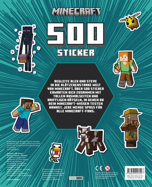 Begleite Alex und Steve in die klötzchenstarke Welt von Minecraft. Über 500 Sticker erwarten dich zusammen mit tollen Ausmalseiten und kniffligen Rätseln, in denen du dein Minecraft-Wissen testen kannst. Jede Menge Spaß für alle Minecraft-Fans.