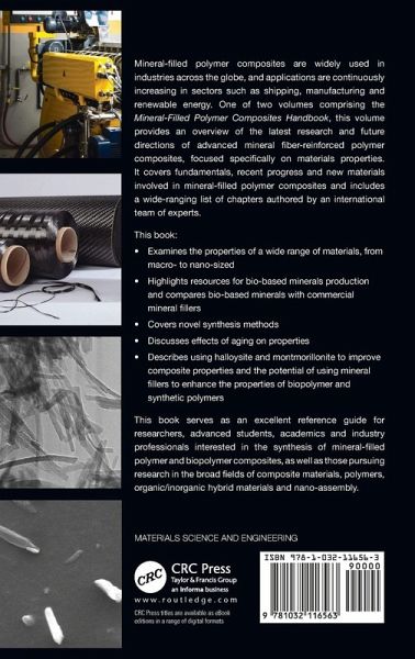1. Bio Mineral Fillers Reinforced Polymer Composites. 2. Mechanical Properties of Geopolymer Filler in Polymer Composites. 3. Basalt Fiber-Reinforced Polymer Composites: A Review. 4. Properties Enhancement of Poly(Lactic Acid) Using Functionalized Mineral Fillers. 5. Ageing of Mineral-Reinforced Polymer Composites. 6. Halloysite-Filled Natural Rubber Composite: Mechanical and Other Related Properties. 7. Halloysite-Filled Natural Rubber Composite: Morphology and Crystallization of the Composites. 8. Alumina Filled Rubber Composites: Application, Mechanical Properties, Morphological Characteristics and Processability. 9. Magnetite Filler Reinforcement for Magnetorheological Elastomer Damping Performance. 10. Characterization and Properties of Montmorillonite-Reinforced Thermoplastic Composites. 11. Mineral-Filled Polymer Composites: Reliability, Challenges, Opportunities and Future Perspectives.