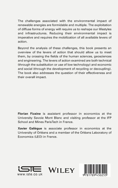 The challenges associated with the environmental impact of renewable energies are formidable and multiple. The exploitation of diffuse forms of energy will require us to reshape our lifestyles and infrastructures. Reducing their environmental impact is imperative and requires the mobilization of all available levers of action.