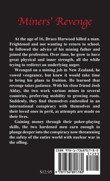 At the age of 16, Draco Harwood killed a man. Frightened and not wanting to return to school, he followed the advice of his mining father and joined the profession. Over time, he grew to have great physical and inner strength, all the while trying to redirect an underlying anger. Wronged on a mining job in New Zealand, he vowed vengeance, but knew it would take time to bring his plans to fruition. He learned that revenge takes patience. With his close friend Josh Alday, the two work various mines in a several countries, preferring mobility to growing roots. Suddenly, they find themselves embroiled in an international conspiracy with themselves and their loved ones in peril, as attempts are made on their lives. Gaining money through their poker-playing skills, the two hardened men earn enough to plunge deeper into the conspiracy now threatening the safety of the entire world with nuclear war in the offing.