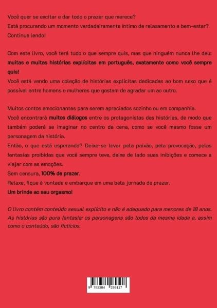 Você quer se excitar e dar todo o prazer que merece?Está procurando um momento verdadeiramente íntimo de relaxamento e bem-estar?Então continue lendo!Com este livro, você terá tudo o que sempre quis e que ninguém nunca lhe deu: muitas e muitas histórias explícitas em português, exatamente como você sempre quis!Você tem diante de si uma coleção de histórias explícitas dedicadas ao bom sexo que é possível entre homens e mulheres que gostam de agradar um ao outro. Muitos contos excitantes para experimentar sozinho ou acompanhado.Você encontrará muitos diálogos entre os protagonistas das histórias, de modo que também poderá se imaginar no centro da cena, como se você mesmo fosse um personagem da história.Então, o que está esperando? Deixe-se levar pela paixão, pela provocação, pelas fantasias proibidas que você sempre teve, deixe de lado suas inibições e comece a viajar com as emoções.Sem censura, 100% de prazer.Relaxe, fique à vontade e embarque em uma bela jornada de prazer.Um brinde ao seu orgasmo!