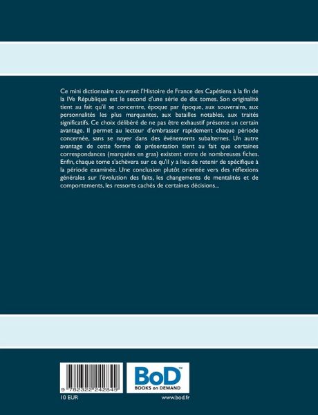 Ce mini dictionnaire consacré à la dynastie des Valois est le second tome d'une collection qui en compte dix, couvrant l'histoire de France des Capétiens à la fin de la IVe République. Son originalité tient au fait qu'il se limite, époque par époque, aux souverains, aux personnalités les plus marquantes, aux batailles notables, aux traités significatifs. Ce choix délibéré de ne pas être exhaustif présente quelques avantages. Il permet au lecteur d'embrasser rapidement chaque période concernée, sans se noyer dans des événements subalternes. Il facilite également (grâce à une accentuation en gras) la mise en correspondance des personnalités et des évènements d'une fiche à l'autre. Pour finir, chaque tome s'achève sur ce qu'il y a lieu de retenir de spécifique à la période examinée. Une conclusion plutôt orientée vers des réflexions générales sur l'évolution des faits, la modification des mentalités et des comportements, les ressorts cachés de certaines décisions...