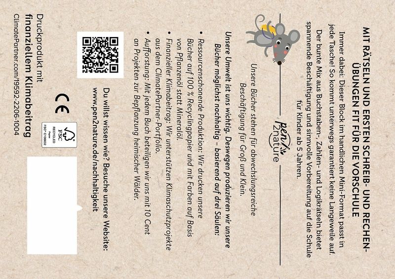Alle Bücher und Blöcke wurden mit Farben auf Pflanzenöl-Basis und auf 100 % Recyclingpapier gedruckt. Der Verlag pen2nature unterstützt Klimaschutzprojekte und spendet 10 Cent pro Produkt für die Pflanzung neuer Bäume in heimischen Wäldern.