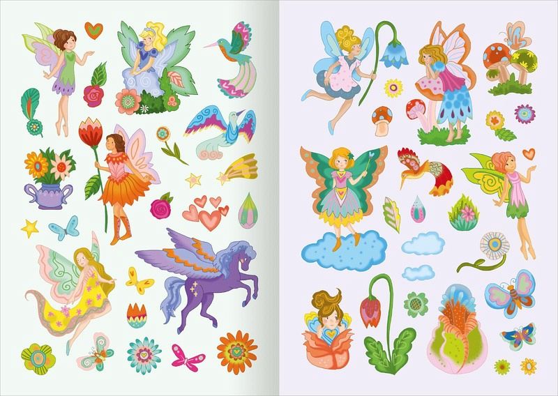 Ob Blumenfee, Zauberstab oder Feenstaub: Über 200 Sticker warten darauf, von dir in die fabelhaften Feenwelten geklebt zu werden. Lass deiner Kreativität freien Lauf und erwecke die Szenen zum Leben.