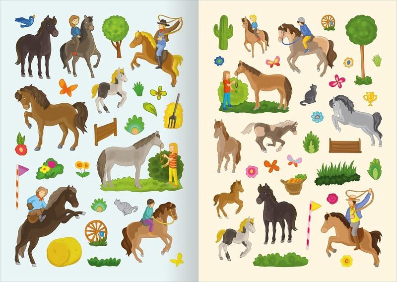 Für Pferde-Fans: Die Szenen rund um das Thema Reiterhof laden zum Stickern ein Viele Sticker: Über 200 Sticker sorgen für jede Menge Klebespaß