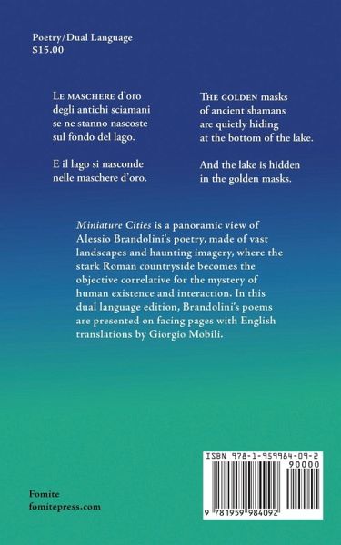 Miniature Cities is panoramic view of Alessio Brandolini's poetry, made of vast landscapes and haunting imagery, where the stark Roman countryside becomes the objective correlative for the mystery of human existence and interaction. In this dual language edition, Brandolini's poems are presented on facing pages with English translations by Giorgio Mobili