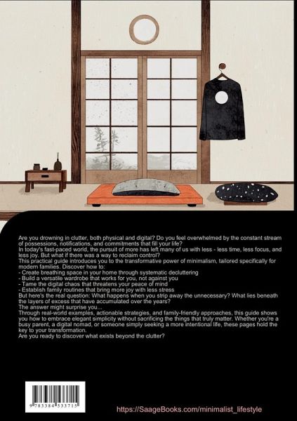 Discover the transformative power of minimalist living in this practical guide that helps you simplify your life and create more meaningful experiences. This book offers a comprehensive approach to minimalism, covering all essential aspects of living with less.Learn how to implement elegant simplicity and essentialism in your daily routines while maintaining a balanced family life. The guide provides step-by-step instructions for decluttering your physical space, digital environment, and mental landscape.Key topics include:- Foundations of simple living and practical minimalism- Systematic decluttering strategies for your home- Creating a minimalist wardrobe with versatile clothing options- Digital minimalism techniques for reducing screen time and organizing digital content- Family-friendly approaches to minimalism that work for all household members- Implementing frugalism and sustainable living practicesThis minimalism book demonstrates that anyone can do minimalism, regardless of their living situation or family size. You'll discover practical methods for:- Organizing and simplifying your living space- Developing efficient household systems- Creating a capsule wardrobe- Managing digital clutter- Establishing family routines that support minimalist livingThe guide emphasizes that minimalism isn't about deprivation - it's about focusing on what truly matters. Through digital minimalism and elegant simplicity, you'll learn to create space for what's essential in your life.Whether you're new to minimalism or looking to deepen your practice, this book provides actionable steps to transform your home, wardrobe, digital life, and family dynamics through the principles of mindful minimalism.This book was created using innovative technologies such as Artificial Intelligence and specially developed tools - for example, in brainstorming, research, writing, editing, quality assurance, and the design of decorative illustrations.In this way, we want to offer you a particularly coherent, modern, and even higher-quality reading experience.