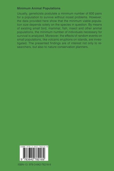 1 Introduction.- 2 The Viability of Small Populations of Birds: an Empirical Investigation of Vulnerability.- 2.1 Introduction.- 2.2 The Theory of Small Population Extinctions.- 2.3 Evidence from Birds: Genetic Effects.- 2.4 Persistence of Small Populations.- 2.5 Conclusions.- References.- 3 Small World Populations in Birds: An Attempt of a Brief General Survey.- 3.1 Introduction.- 3.2 Material and Methods.- 3.3 Results and Conclusions.- References.- 4 Genetic, Demographic, Spatial, Environmental and Catastrophic Effects on the Survival Probability of Small Populations of Mammals.- 4.1 Introduction.- 4.2 Genetic Considerations.- 4.3 Demographic and Spatial Considerations.- 4.4 Environmental and Catastrophic Considerations.- 4.5 Conclusions.- References.- 5 On Micropopulations in Fish and Their Effects on Differentiation and Speciation.- 5.1 Introduction.- 5.2 Micropopulations in Anatolian Aphanius ssp. (Fam.: Cyprinodontidae).- 5.3 Intralacustrine Segregation Phenomena in East African Cichlids (Cichlidae).- 5.4 Conclusion.- References.- 6 Modelling Extinction and Survival of Small Populations.- 6.1 Introduction.- 6.2 Population Dynamics with Overlapping Generations.- 6.3 Population Dynamics with Non-Overlapping Generations.- 6.4 Conclusion.- References.- 7 "Very Small" Bird Populations in Amazonia.- 7.1 Introduction.- 7.2 "Very Small" Bird Populations in Amazonia.- 7.3 Summary.- References.- 8 Minimum Population of Clethrionomys glareolus (Schreber 1780).- 8.1 Introduction.- 8.2 Area, Material and Methods.- 8.3 Results.- 8.4 Discussion.- References.- 9 Minimum Populations of Carabid Beetles (Col., Carabidae).- 9.1 Introduction.- 9.2 Area and Methods.- 9.3 Results.- 9.4 Discussion.- References.- 10 To Survive or To Become Extinct: Small Populations of Tetraonidsin Central Europe.- 10.1 Introduction.- 10.2 Capercaillie.- 10.3 Black Grouse.- 10.4 Hazel Grouse.- 10.5 Conclusions.- References.