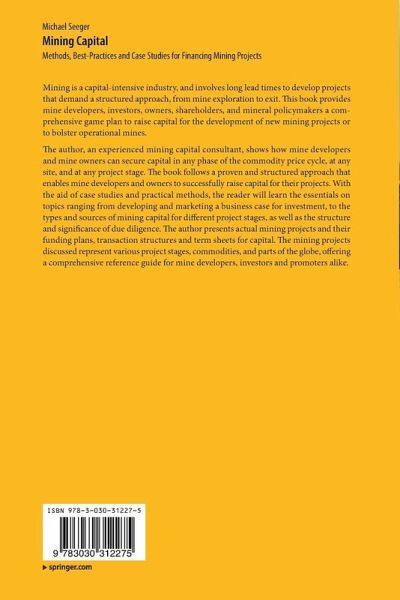 The author, an experienced mining capital consultant, shows how mine developers and mine owners can secure capital in any phase of the commodity price cycle, at any site, and at any project stage. The book follows a proven and structured approach that enables mine developers and owners to successfully raise capital for their projects. With the aid of case studies and practical methods, the reader will learn the essentials on topics ranging from developing and marketing a business case for investment, to the types and sources of mining capital for different project stages, as well as the structure andsignificance of due diligence. The author presents actual mining projects and their funding plans, transaction structures and term sheets for capital. The mining projects discussed represent various project stages, commodities, and parts of the globe, offering a comprehensive reference guide for mine developers, investors and promoters alike.