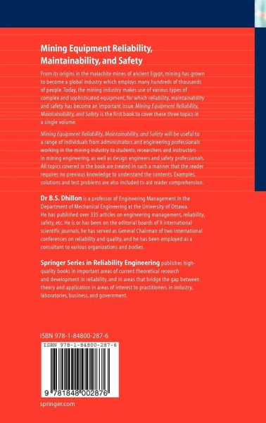 Mining Equipment Reliability, Maintainability and Safety will be useful to a range of individuals from administrators and engineering professionals working in the mining industry to students, researchers and instructors in mining engineering, as well as design engineers and safety professionals. All topics covered in the book are treated in such a manner that the reader requires no previous knowledge to understand the contents. Examples, solutions and test problems are also included to aid reader comprehension.