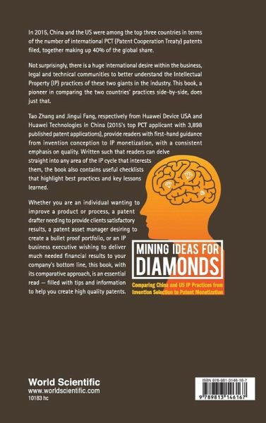In 2015, China and the U.S. were among the top three countries in terms of the number of international PCT (Patent Cooperation Treaty) patents filed, together making up 40% of the global share, reported the World Intellectual Property Organization (WIPO). Not surprisingly, there is a huge international desire within the business, legal and technical communities to better understand the Intellectual Property (IP) practices of these two giants in the industry. This book, a pioneer in comparing the two countries' practices side-by-side, does just that. Tao Zhang and Jingui Fang, respectively from Huawei Device USA and Huawei Technologies in China (2015's top PCT applicant according to WIPO, with 3,898 published patent applications), provide readers with first-hand guidance from invention conception to IP monetization, with a consistent emphasis on quality. Written such that readers can delve straight into any area of the IP cycle that interests them, the book also contains useful checklists that highlight best practices and key lessons learned. Whether you are an individual wanting to improve a product or process, a patent drafter needing to provide client satisfactory results, a patent asset manager desiring to create a bullet proof portfolio, or an IP business executive wishing to deliver much needed financial results to your company's bottom line, this book, with its comparative approach, is an essential read - filled with tips and information to help you create high quality patents.