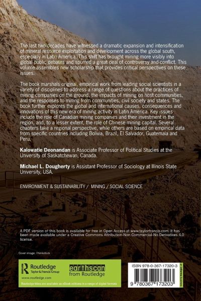 The last two decades have witnessed a dramatic expansion and intensification of mineral resource exploitation and development across the global south, especially in Latin America. This shift has brought mining more visibly into global public debates and spurred a great deal of controversy and conflict. This volume assembles new scholarship that provides critical perspectives on these issues. The book marshals original, empirical work from leading social scientists in a variety of disciplines to address a range of questions about the practices of mining companies on the ground, the impacts of mining on host communities, and the responses to mining from communities, civil society and states. The book further explores the global and international causes, consequences and innovations of this new era of mining activity in Latin America. Key issues include the role of Canadian mining companies and their investment in the region, and, to a lesser extent, the role of Chinese mining capital. Several chapters take a regional perspective, while others are based on empirical data from specific countries including Bolivia, Brazil, El Salvador, Guatemala and Peru.