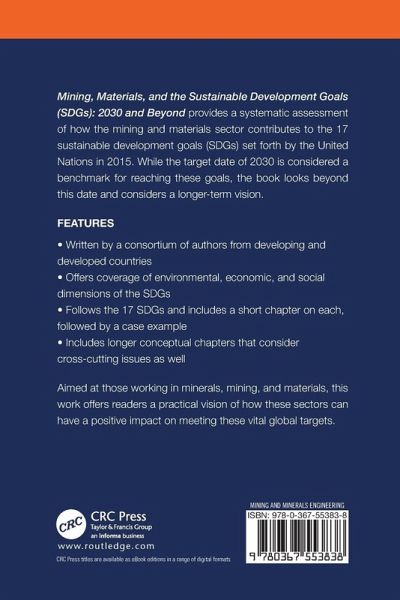 The book provides a systematic assessment of how the mining and materials sector contributes to the 17 sustainable development goals set forth by the UN in 2015. The target date of 2030 for reaching these goals is considered as a benchmark but the book looks beyond considering a longer-term vision.