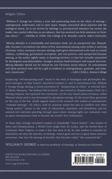 Employing "self-sharpening tools" found in the work of theologian and philosopher Bernard Lonergan, Pope Francis’ encyclical Laudato si’, and international law, William P. George brings mining to personal and collective moral awareness by "prospecting for ethics" at selected sites: (1) Butte, Montana, "the Richest Hill on Earth," once bound to Chuquicamata, Chile, by a company that spanned two continents and nearly owned a state; (2) the tiny island nation of Nauru, called Pleasant Island until it was devastated by phosphate mining and the breaking of a sacred trust by foreign powers; (3) the deep seabed, governed by the United Nations Law of the Sea, a "constitution for the oceans" that regards much of the resource-rich seabed as humankind’s "common heritage"; (4) Africa, with its uranium mines but also its conflicts over what "being nuclear" means in the wake of colonialism, apartheid, and Hiroshima; and (5) mineral-rich asteroids speeding through space where mining rights are contested, even as space entrepreneurs look to become the world’s first trillionaires. George introduces readers to remarkable moral miners––the women of Butte and Chuquicamata, a World Court judge from Sri Lanka, and the Rocket Boys of Coalwood, West Virginia, to name a few––and leads them to consider not only the morality of mining––what’s good and not so good about resource extraction––but also the mining of morality, a venture that Socrates called "the examined life."