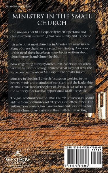 One size does not fit all, especially when it pertains to a church's role in ministering to a community and its people. It is a fact that most churches in America are small in size. Many of these churches are steadily shrinking. As a response to this need, there have been many books written about Church growth and Church health. Books regarding ministry and church leadership are often written by pastors of large churches that may not have the same perspective about Ministry In The Small Church. Ministry In The Small Church focuses on working in the hearts, minds, and attitudes of ministers and the leadership of small churches for the glory of Christ. It is a call to renew the ministry that God has apportioned to all His people. The goal of Ministry in the Small Church is to encourage and aid the focus of ministers of all types in small churches. The author, Tyler Somers, has a unique love and perspective for Christ's Church, particularly in the small church setting.