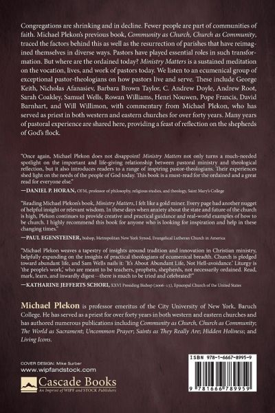 Congregations are shrinking and in decline. Fewer people are part of communities of faith. Michael Plekon's previous book, Community as Church, Church as Community, traced the factors behind this as well as the resurrection of parishes that have reimagined themselves in diverse ways. Pastors have played essential roles in such transformation. But where are the ordained today? Ministry Matters is a sustained meditation on the vocation, lives, and work of pastors today. We listen to an ecumenical group of exceptional pastor-theologians on how pastors live and serve. These include George Keith, Nicholas Afanasiev, Barbara Brown Taylor, C. Andrew Doyle, Andrew Root, Sarah Coakley, Samuel Wells, Rowan Williams, Henri Nouwen, Pope Francis, David Barnhart, and Will Willimon, with commentary from Michael Plekon, who has served as priest in both western and eastern churches for over forty years. Many years of pastoral experience are shared here, providing a feast of reflection on the shepherds of God's flock.