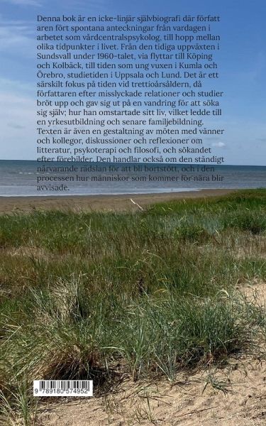 Boken är en spontant skriven postmodernt inspirerad text där författaren för anteckningar och följer de associationer som för tillfället dyker upp. Den består av korta dagboksanteckningar, tidsmässiga hopp fram och tillbaka. Från nusituationen inför det kommande slutet av yrkesbanan som vårdcentralspsykolog, via återblickar på barndom och uppväxt i födelsestaden Sundsvall, ungdomsåren och tiden som ung vuxen i Örebro, studietiden i Uppsala och Lund, åren som tvättbiträde, arbetet inom hemtjänsten. Med särskilt fokus på tiden kring trettioårsåldern då författaren bröt upp från sin bakrund och erfarenheterna från oavslutade universitetsstudier, via planlösa resor i Polen, skogsvandringar; och återkomsten till Sverige, då författaren slog sig ned i Skåne och startade om sitt liv, började i psykoterapi, gick en yrkesutbildning, och till sist bildade familj, och sedan arbetade som psykolog. I texten blandas omväxlande memoarskildringar med drömberättande och extrapolerade fantasier.