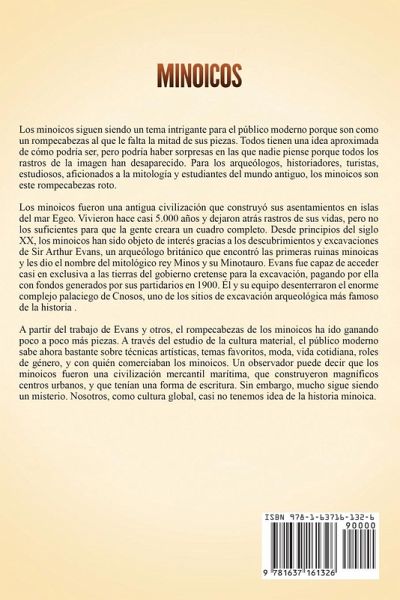 Si desea descubrir la fascinante historia de la civilización minoica siga leyendo... Los minoicos siguen siendo un tema intrigante para el público moderno porque son como un rompecabezas al que le falta la mitad de sus piezas. Todos tienen una idea aproximada de cómo podría haber sido, pero podría haber sorpresas en las que nadie piense porque todos los rastros de la imagen han desaparecido. Para los arqueólogos, historiadores, turistas, estudiosos, aficionados a la mitología y estudiantes del mundo antiguo, los minoicos son este rompecabezas roto. Los minoicos fueron una antigua civilización que construyó sus asentamientos en islas del mar Egeo. Vivieron hace casi 5.000 años y dejaron atrás rastros de sus vidas, pero no los suficientes para que la gente creara un cuadro completo. Desde principios del siglo XX, los minoicos han sido objeto de interés gracias a los descubrimientos y excavaciones de Sir Arthur Evans, un arqueólogo británico que encontró las primeras ruinas minoicas y les dio el nombre del mitológico rey Minos y su Minotauro. Evans fue capaz de acceder casi en exclusiva a las tierras del gobierno cretense para la excavación, pagando por ella con fondos generados por sus partidarios en 1900. Él y su equipo desenterraron el enorme complejo palaciego de Cnosos, uno de los sitios de excavación arqueológica más famoso de la historia. A partir del trabajo de Evans y otros, el rompecabezas de los minoicos ha ido ganando poco a poco más piezas. A través del estudio de la cultura material, el público moderno sabe ahora bastante sobre técnicas artísticas, temas favoritos, moda, vida cotidiana, roles de género, y con quién comerciaban los minoicos. Un observador puede decir que los minoicos fueron una civilización mercantil marítima, que construyeron magníficos centros urbanos, y que tenían una forma de prototipo. En Minoicos: Una guía fascinante de una sociedad esencial de la Edad de Bronce en la antigua Grecia llamada la civilización minoica, descubrirá temas como:¿Dónde y cuándo vivieron los minoicos? La historia conocida de los minoicos antes de los micénicos Sociedad, cultura y vida cotidiana El comercio y la construcción naval en el mar Mediterráneo Lenguaje y lineal A Los posibles predecesores de la religión griega Arte Arquitectura Teorías sobre el colapso de la civilización ¡Y mucho, mucho más! ¡Adquiera este libro ahora para aprender más sobre los minoicos!