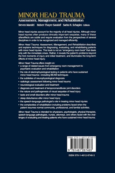 Minor Head Trauma describes and explains techniques for diagnosing, evaluating, and rehabilitating patients with minor head injuries. This book emphasizes the importance of long-term treatment of patients beyond the initial moments of injury and treatment in the emergency room. Minor Head Trauma offers insight on: - a range of related issues from emergency room management to psychiatric evaluation and rehabilitation; - the role of electrophysiological testing in patients - including BEAM techniques; - the subtleties of neurophysiological diagnosis; - neurotoxicological evaluation and treatment; - diagnosis and treatment of temporomandibular joint disorders; - the nature and pathogenesis of visual sequelae of head injury; - the speech-language pathologist's role in treating minor head injuries; - the complexities of rehabilitation including problems faced when the patient resumes normal community, professional and familial activities. Minor Head Trauma is intended for physicians,psychologists, physical therapists, speech-language pathologists, nurses, attorneys, and others faced with the challenges of evaluating and treating patients who have sustained minor head trauma.