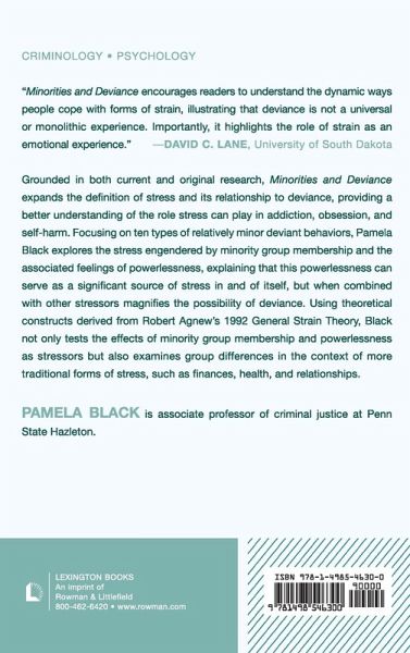 Grounded in both current and original research, Minorities and Deviance, expands the definition of stress and its relationship to deviance, providing a better understanding the role stress can play in addiction, obsession, and self-harm. Focusing on ten types of relatively minor deviant behaviors, Pamela Black explores the stress engendered by minority group membership and the associated feelings of powerlessness and how this can serve as a significant source of stress in and of itself, but when combined with other stressors magnifies the possibility of deviance. Using theoretical constructs derived from Robert Agnew's 1992 General Strain Theory, Black tests the effects of not only minority group membership and powerlessness as stressors, but also examines group differences in the effect of more traditional forms of stress: finances, health, and relationships.