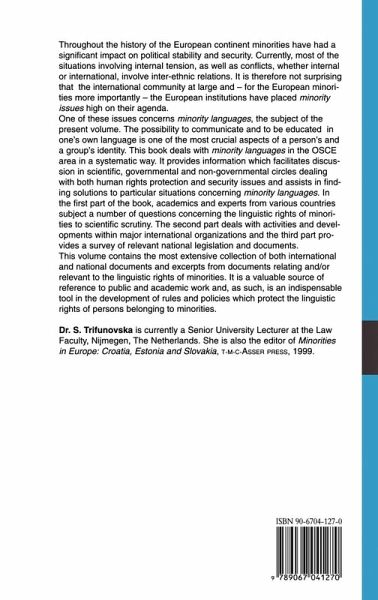 The possibility to communicate and to be educated in one's own language is one of the most crucial aspects of a person's and a group's identity. This book deals with minority languages in the Organization for Security and Cooperation in Europe (OSCE) area in a systematic way. It provides information which facilitates discussion in scientific, governmental and non-governmental circles dealing with both human rights protection and security issues and assists in finding solutions to particular situations concerning minority languages.