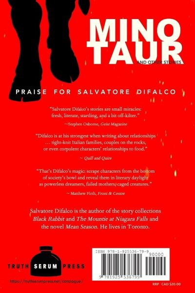 "Salvatore Difalco's fiction is a finely blended mix of toughness, street-smart insights and violence, along with flashes of tenderness and compassion. (His stories) are thoughtful, enigmatic ... drawing the reader in with sharp detail, poetic phrasing and recognizable characters. Though we're dealing with thugs, prostitutes and crackheads, they are all folks you'll feel uncomfortably at home with. That's Difalco's magic: scrape characters from the bottom of society's bowl and reveal them in literary daylight as powerless dreamers, failed mothers, caged creatures." ~ Matthew Firth, 'Front & Centre'