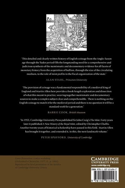 Money could be as essential to everyday life in medieval England as it is today, but who made the coinage, how was it used and why is it important? This definitive study charts the development of coin production from the small workshops of Anglo-Saxon and Norman England to the centralised factory mints of the late Middle Ages, the largest being in the Tower of London. Martin Allen investigates the working lives of the people employed in the mints in unprecedented detail and places the mints in the context of medieval England's commerce and government, showing the king's vital interest in the production of coinage, the maintenance of its quality and his mint revenue. This unique source of reference also offers the first full history of the official exchanges in the City of London regulating foreign exchange and an in-depth analysis of the changing size and composition of medieval England's coinage.