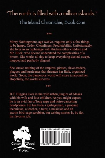 During the plague of 1262, Minty Nothingmore contracts the Pox at her birth. Her mother dies from it only hours later, singing lullabies for Minty to her last breath. The ancient woman named Granny Shin holds a milk-soaked rag for Minty to suckle. No one else expects the infant to survive. No baby with plague had before, but Minty Nothingmore is no ordinary baby. She lives. Granny sends Minty to the orphanage with a letter that will shake the world and save every person on the little island of Rocky Cove. 12 years later... Minty Nothingmore, age twelve, requires only a few things to be happy. Order. Cleanliness. Predictability. Unfortunately, she lives in an orphanage with thirteen other children and Mr. Blick, who doesn't understand the complexities of a broom. She works all day to keep everything dusted, swept, mopped and perfectly aligned. She knows nothing of the empires, pirates, slave-traders, plagues and hurricanes that threaten her little, organized world. Soon, the dangerous world will close in around her. Hopefully, the world survives. The earth is filled with a million islands. Rocky Cove is just a small, insignificant one that doesn't show up on any of the maps. Soon, it will become the most important of all.