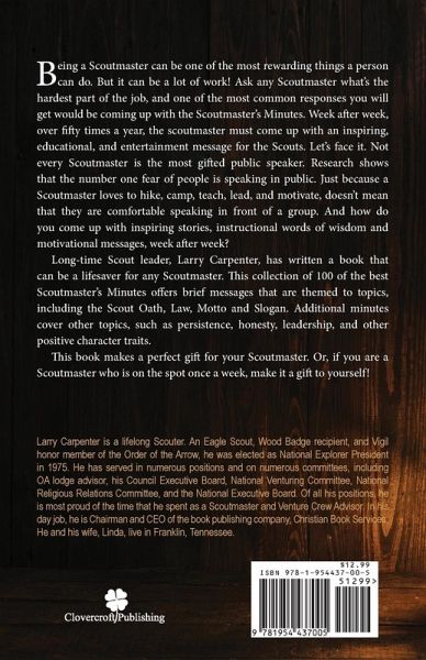 Scoutmasters must come up with over fifty scoutmaster's minutes a year. This book will provide them with 100 of the most inspiring, motivational, educational, and entertaining messages.