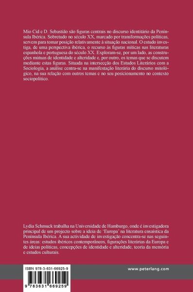 Mio Cid e D. Sebastião são figuras centrais no discurso identitário da Península Ibérica. Sobretudo no século XX, marcado por transformações políticas, servem para tomar posição relativamente à situação nacional. O estudo investiga, de uma perspectiva ibérica, o recurso às figuras míticas nas literaturas espanhola e portuguesa do século XX. Exploram-se, por um lado, as construções mútuas de identidade e alteridade e, por outro, os temas que se discutem mediante estas figuras. Situada na intersecção dos Estudos Literários com a Sociologia, a análise centra-se na manifestação literária do discurso mitológico, na sua relação com outros temas e no seu posicionamento no contexto sociopolítico.