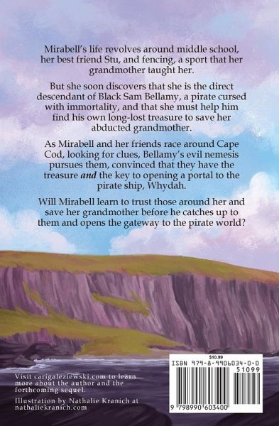 Mirabell's life revolves around middle school, her best friend Stu, and fencing, a sport that her grandmother taught her. But she soon discovers that she is the direct descendant of Black Sam Bellamy, a pirate cursed with immortality, and that she must help him find his own long-lost treasure to save her abducted grandmother. As Mirabell and her friends race around Cape Cod, looking for clues, Bellamy's evil nemesis pursues them, convinced that they have the treasure and the key to opening a portal to the pirate ship, Whydah. Will Mirabell learn to trust those around her and save her grandmother before he catches up to them and opens the gateway to the pirate world?