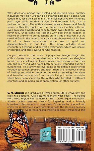 Why does one person get healed and restored while another individual may die? Life can be a strange paradox it seems. One couple may lose their child in a tragic accident like my friend did years ago, while another family's child recovers fully from a serious car crash. The author shares personal issues and family stories within this book that the reader may identify with and even gain some insight and hope for their own situation. We may never fully understand the reasons why bad things happen or receive an answer to our questions on this side of heaven, but we can find God in the midst of our pain if we choose to look for him. All of us have experienced some loss or grief and disappointments in our lives. This book includes divine encounters, healings, and powerful testimonies which will inspire, encourage, and bless everyone who reads it. Do you believe in the power of prayer to change things? The author shares how they received a miracle when their daughter faced a very challenging illness; prayers were answered for their son and his friend who were both seriously wounded during a hunting trip. This family has overcome some difficult experiences through agreement prayers and faith. There are numerous stories of healing and divine protection as well as amazing interviews and true-life testimonies from people living in other countries which have been shared by this author who traveled to different countries and gained a great appreciation for other cultures.
