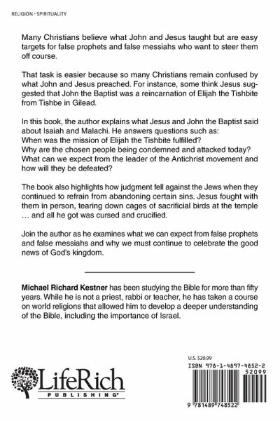With Israel being in the news regularly now, the book examines the following very important question about Elijah the Tishbite. The Apostles asked Jesus why the teachers of the law said the Elijah the Tishbite had to return from heaven before the Messiah appeared in the Promised Land. It seems the teachers of the law believed Elijah the Tishbite would introduce the people to the Messiah. Jesus did not agree with them. Please see Matthew 11:7-15 and Mark 9:1-13. The Apostles asked Jesus why the teachers of the law said the Elijah the Tishbite had to return from heaven before the Messiah…mehr