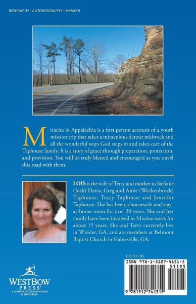 Miracles in Appalachia is a first person account of a youth mission trip that takes a miraculous detour midweek and all the wonderful ways God steps in and takes care of the Taphouse family. It is a story of grace through preparation, protection, and provision. You will be truly blessed and encouraged as you travel this road with them.
