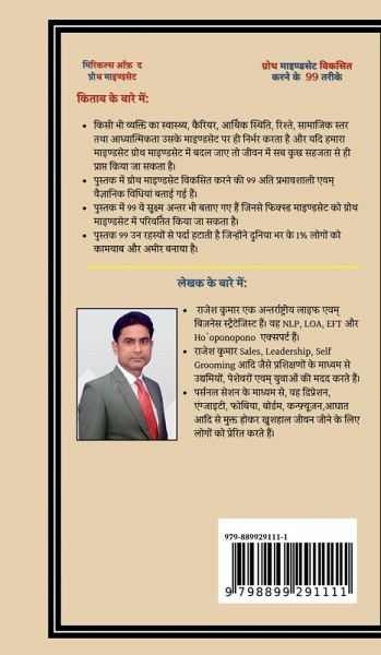 About the book: Any person's health, career, financial status, relationships, social status and spirituality depend on his mindset and if our mindset changes to a growth mindset, then everything in life can be achieved easily. The book describes 99 very effective and scientific methods to develop a growth mindset. The book also describes 99 subtle differences through which a fixed mindset can be transformed into a growth mindset. The book unveils 99 secrets that have made 1% people around the world successful and rich.