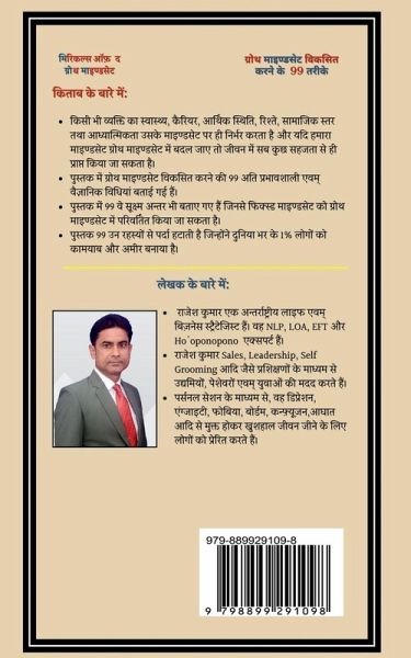 About the book: Any person's health, career, financial status, relationships, social status and spirituality depend on his mindset and if our mindset changes to a growth mindset, then everything in life can be achieved easily. The book describes 99 very effective and scientific methods to develop a growth mindset. The book also describes 99 subtle differences through which a fixed mindset can be transformed into a growth mindset. The book unveils 99 secrets that have made 1% people around the world successful and rich.