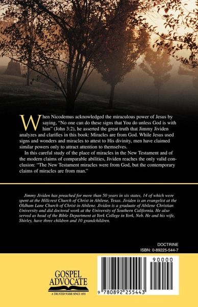 In this careful study of the place of miracles in the New Testament and of the modern claims of comparable abilities, Jimmy Jividen reaches the only valid conclusion: "The New Testament miracles were from God, but the contemporary claims of miracles are from man."