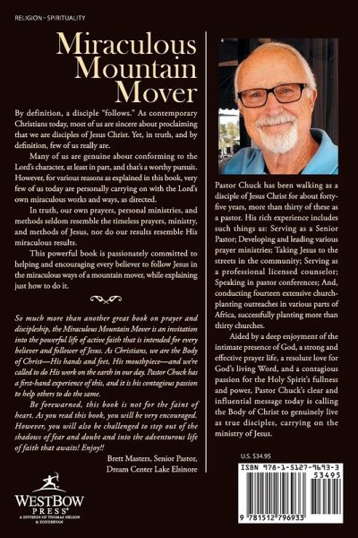 By definition, a disciple "follows." As contemporary Christians today, most of us are sincere about proclaiming that we are disciples of Jesus Christ. Yet, in truth, and by definition, few of us really are. Many of us are genuine about conforming to the Lord's character, at least in part, and that's a worthy pursuit. However, for various reasons as explained in this book, very few of us today are personally carrying on with the Lord's own miraculous works and ways, as directed. In truth, our own prayers, personal ministries, and methods seldom resemble the timeless prayers, ministry, and methods of Jesus, nor do our results resemble His miraculous results. This powerful book is passionately committed to helping and encouraging every believer to follow Jesus in the miraculous ways of a mountain mover, while explaining just how to do it. So much more than another great book on prayer and discipleship, the Miraculous Mountain Mover is an invitation into the powerful life of active faith that is intended for every believer and follower of Jesus. As Christians, we are the Body of Christ-His hands and feet, His mouthpiece-and we're called to do His work on the earth in our day. Pastor Chuck has a first-hand experience of this, and it is his contagious passion to help others to do the same. Be forewarned, this book is not for the faint of heart. As you read this book, you will be very encouraged. However, you will also be challenged to step out of the shadows of fear and doubt and into the adventurous life of faith that awaits! Enjoy!! Brett Masters, Senior Pastor, Dream Center Lake Elsinore