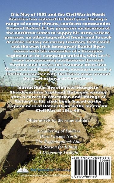 It is May of 1863 and the Civil War in North America has entered its third year. Facing a range of enemy threats, southern commander General Robert E. Lee proposes an invasion of the northern states to supply his army, relieve pressure on other imperilled fronts and to seek decisive victory on enemy territory that could end the war. Irish immigrant Daniel Ryan serves with his comrades of a Georgian regiment as the campaign unfolds, with Lee's army manoeuvring northwards through Virginia and across the Potomac River into Maryland and Pennsylvania, moving towards a fateful encounter with the Union army around the market town of Gettysburg. Martin Hicks lives in Fraserburgh in Aberdeenshire, Scotland. He began writing after a career in education and "Mirage of Victory" is his sixth book, based on the experiences of Daniel Ryan in the American Civil War of 1861-65. Other novels by the same author: A Gathering of Soldiers Hard Passage North The Rappahannock Line A Season for Killing A Deepening Twilight