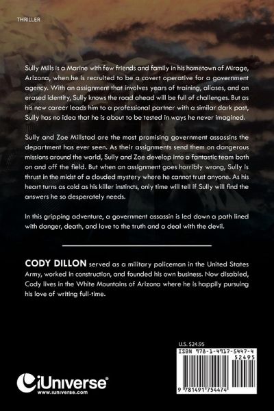 Sully Mills is a Marine with few friends and family in his hometown of Mirage, Arizona, when he is recruited to be a covert operative for a government agency. With an assignment that involves years of training, aliases, and an erased identity, Sully knows the road ahead will be full of challenges. But as his new career leads him to a professional partner with a similar dark past, Sully has no idea that he is about to be tested in ways he never imagined. Sully and Zoe Millstad are the most promising government assassins the department has ever seen. As their assignments send them on dangerous missions around the world, Sully and Zoe develop into a fantastic team both on and off the field. But when an assignment goes horribly wrong, Sully is thrust in the midst of a clouded mystery where he cannot trust anyone. As his heart turns as cold as his killer instincts, only time will tell if Sully will find the answers he so desperately needs. In this gripping adventure, a government assassin is led down a path lined with danger, death, and love to the truth and a deal with the devil.